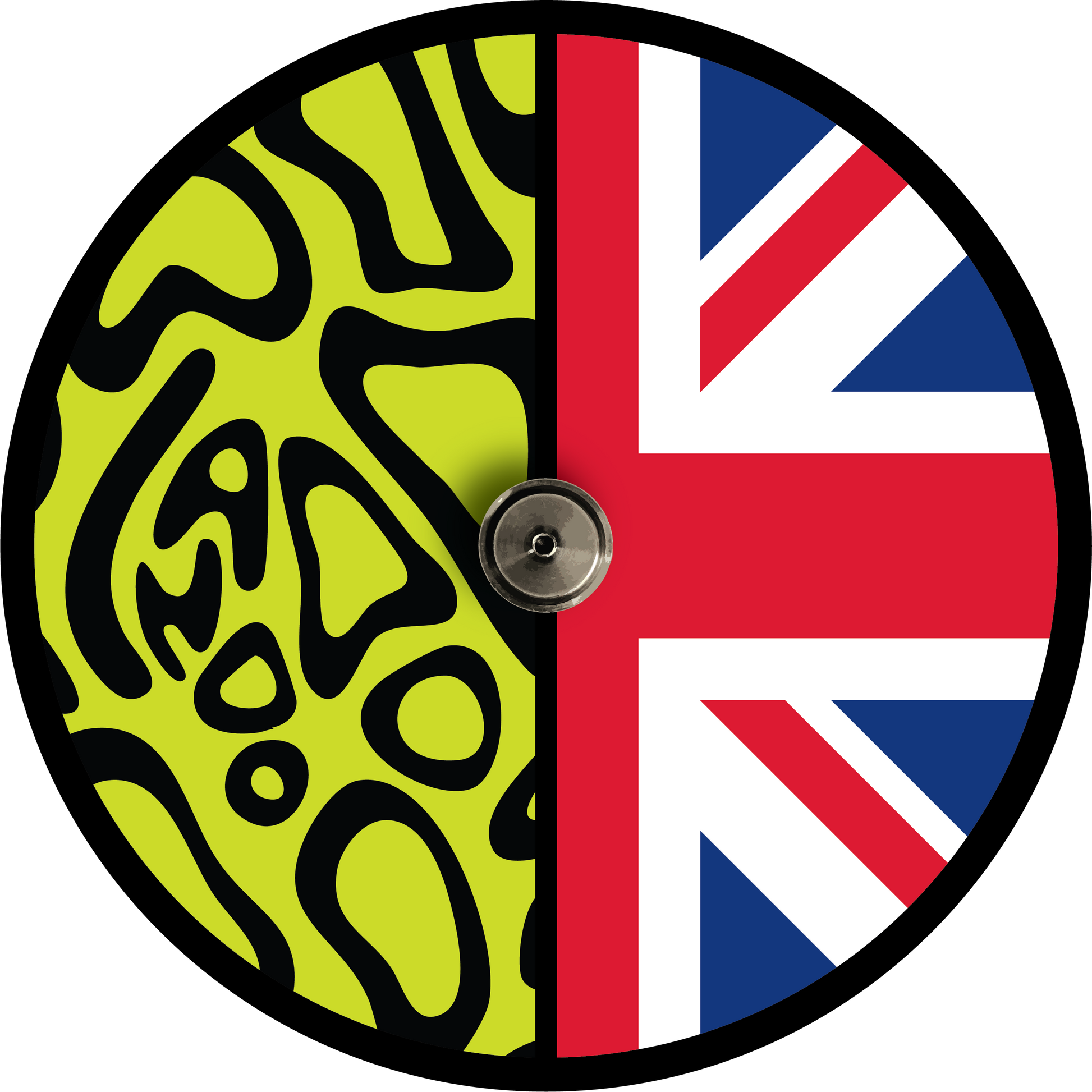 Mounting base and rod: Mounted on a black coated wooden base with a custom helmet - Union Flag design and a titanium drive peg from a modern Formula One GP car.